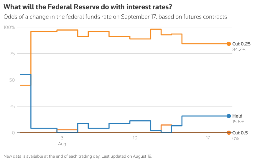 Beyond political pressure, the market is also focused on whether Powell will signal a September rate cut at the annual meeting. While US inflation is currently lower than its peak two years ago, it remains approximately 1 percentage point above the Fed's 2% target. The unemployment rate remains at a historic low of 4.2%, striking a delicate balance between the Fed's dual mandate of price stability and maximum employment. Investors are already placing aggressive bets on rate cuts. Interest rate futures traders are pricing in an 85% probability of a 25 basis point cut in September, with expectations for another 25 basis point cut before the end of the year.